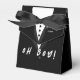 Le design présente l'aspect d'un smoking comme arrière - plan des mots "Oh mon garçon !" Le texte est personnalisable et peut être remplacé par un nom ou un autre libellé. Idéal pour un baby shower à thème en smoking.