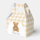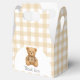 Un baby shower rustique à thème "We Can Bearly Wait" avec un mignon ours en preppy vêtu d'une tenue de luxe design en marron, beige couleurs et en vichy arrière - plan. Vous pouvez facilement personnaliser ceci avec vos détails.