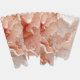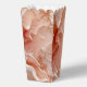 Fluid waves of blush and peach ripple across a glossy surface, adorned with golden veins and scattered droplets.
