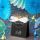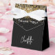 Un anniversaire ou événement marquant élégant et glamour. Un fond noir avec des confettis dorés factices. Avec le texte : Merci ! Personnalisez et ajoutez votre nom. Lettres blanches. Le nom est écrit avec un style de lettrage manuscrit tendance.
