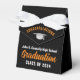 Ce ballotin moderne orange et noir de la fête de fin d'études supérieures de la coutume met en vedette votre nom de lycée ou de collège pour la classe de 2025. Customisez avec votre année de graduation sous l'écriture chic manuscrite et le casquette blanc pour un grand cadeau de maintien de diplômes personnalisés.