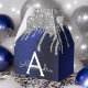 Boîte-cadeau en papier métallisé à paillettes et monogramme argent et bleu marine. C'est le cadeau idéal pour un anniversaire des 16 ans, un mariage, une douche de mariée, un anniversaire de mariage, une baby shower ou une fête de bachelorette pour quelqu'un qui aime le luxe glamour et les styles chics.