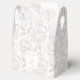 Pale Taupe Monogram Crest Wedding Favor Box : poitrine en monogramme d'art Vintage avec typographie élégante. Ajoutez les initiales pour une crête de mariage personnalisée. Comprend un modèle floral de pivoines chinoiserie pour une sophistication intemporelle.