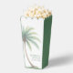 This watercolor palm tree popcorn box adds a breezy tropical vibe with a green beach inspired aesthetic, perfect for destination weddings, summer parties, bridal showers, luaus, and coastal birthday celebrations. A fun and festive choice for beach loving couples, friends, or family gatherings, it brings island charm to your snack table. The hand painted palm tree design creates a relaxed and elegant look. Personalize the box text to match your event.