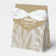 Party Favor boîtes avec des frondes de palmier blanc sur un arrière - plan d'or. Parfait pour toute célébration, fête d'anniversaire, douche nuptiale, fête de fiançailles, fête de retraite, mariage et plus. Cliquez sur PERSONNALISER pour modifier la couleur de l'arrière - plan, les polices et ajouter un libellé. Voir les invitations et les articles correspondants dans notre magasin —> http://bit.ly/2UyWIVj <—