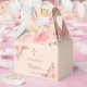 Un arrière - plan rose en or. Décoré de fleurs rose vif et or rose, pampas herbe une croix dorée. Avec le texte : Baptême écrit avec un rose moderne couleur foncé à la main écriture style. Personnalisez et ajoutez un nom et une date.