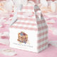 This cute "pancakes & pacifiers" girl's baby shower/brunch favor box features a white and pink gingham background with pancakes, berries and a pink pacifier. Personalize it for your needs. You can find matching products at my store.