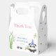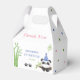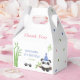 Cute baby panda kids birthday favor box featuring an adorable panda wearing party hat with a panda footprint, bamboo and stars at the background.