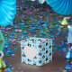 Boîte de fête en bleu clair dans un joli imprimé de panda de dessin animé. Customisez cet article et ajoutez votre propre texte ou achetez tel quel et ajoutez un joli ruban.