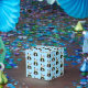 Boîte de fête en bleu clair dans un joli imprimé de panda de dessin animé. Customisez cet article et ajoutez votre propre texte ou achetez tel quel et ajoutez un joli ruban.