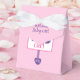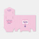 Cette douce boîte de faveur pour petite fille présente un joli panneau accueillant son arrivée dans le monde.