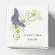 Personnalisez une boîte unique de faveur de mariage pour les invités avec cette boîte de préférence florale de papillon violet unique. Le design ballotin est composé d'un papillon violet reposant sur des fleurs et des fleurs de vert vif. Personnalisez avec les noms du marié et de la mariée avec la date du mariage. Papier à lettres mariage supplémentaire disponible avec cette conception aussi. Vous avez besoin d'aide pour la personnalisation ? Merci de me contacter et je travaillerai sur le libellé et les détails pour adapter ce design à votre satisfaction.