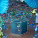 Ballotins Papillons d'or sur un Arrière - plan bleu