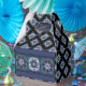 Un motif plutôt gothique en violet foncé sur fond noir, avec quelques touches plus lumineuses : un motif de parapluie en dentelle à 7 panneaux avec 7 coeurs violets, assemblés de diverses manières pour un look mystérieux et romantique. (💜 certains d'entre vous verront également à la couleur violette et au 7 que je suis fan d'un groupe de kpop mondialement connu💜).