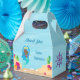 Ballotin de fête d'anniversaire pour les enfants mignons pour une petite Africaine Américaine qui aime les jolies sirènes pourpres cheveux. Ces mignonnes boîtes de fête sont ornées d'une adorable sirène noire aux cheveux roses nageant autour du beau corail de l'océan. Un thème cool pour la piscine pour enfants avec à l'arrière un adorable hippocampe rose et un château sous-marin.