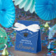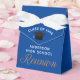 Cette boîte de faveur de la fête de la Réunion du lycée personnalisée moderne comporte le nom des anciens élèves du secondaire en écriture blanche sur un fond bleu pour une 10ème, 20ème ou 30ème célébration.