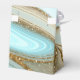 Cet ensemble design, avec son motif abstrait d'ondulations fluides et de veines d'or scintillant, évoque des formations rocheuses captivantes, des dunes de sable coulantes et des vagues océaniques douces. Les couleurs saisissantes de la mer et du sable de cet ensemble viennent compléter l'attrait. La boîte de faveur de mariage montrée ici a tout ce qui précède avec modèle pour ajouter facilement vos initiales et la date de mariage. Recherchez ID903 pour voir d'autres choix de couleurs et coordonner des pièces pour cette collection de mariages unique.