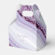 Cet ensemble de design mariage, avec son motif abstrait d'ondulations fluides et de veines de prune scintillante, rappelle les formations rocheuses et les gemmes étincelantes. La palette de couleurs frappante dans les teintes allant du lilas et de la lavande à la perwinkle molle ajoute à l'attrait. La boîte de faveur de mariage montrée ici a tout ce qui précède avec modèle pour ajouter facilement vos initiales et la date de mariage. Recherchez ID903 pour voir d'autres choix de couleurs et coordonner des pièces pour cette collection de mariages unique.