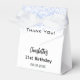 Soirée d'anniversaire élégante et glamour de 21e (ou de n'importe quel âge). Un arrière - plan blanc chic à la fausse parties scintillant bleu clair brille. Avec le texte : Merci ! Personnalisez et ajoutez votre nom. Le nom est écrit avec un script de style à la main tendance.