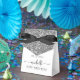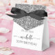 Girly Elegant Moderne Design Parties scintillant Argent Monogramme Nom Signature Script Personnalisé Ballotin d'anniversaire de 30e (ou de n'importe quel âge). Ce design qui met en vedette votre prénom dans un joli style écrit à la main la typographie de signature de la queue d'écharpe (ou calligraphie) au-dessus du faux bloc de parties scintillant gris argent sur arrière - plan blanc. Ces boîtes-cadeaux élégantes et féminines, idéales pour distribuer, cadeaux, cadeaux d'hôtes et gâteries pendant une fête d'anniversaire à venir, réception de mariage, baby shower, soirée bachelorette, barbecue, douche nuptiale, 16 ans, anniversaire et plus.