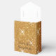Ballotin glamour de la parties scintillant d'or de mariage. Texte personnalisé pour remercier les invités. Message de remerciement personnalisé de la mariée et du marié. Écran doré avec étincelants brillants et brillants plus élégant ruban noir. Texte personnalisable Design de luxe clinquant à thème avec typographie élégante. Idéal pour les mariages de fantaisie.