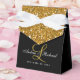 Vos clients mariages apprécieront votre attention aux détails. Personnalisez cette magnifique boîte de parties scintillant de mariage or avec votre monogramme personnalisé, nom de mariée et de mariée et date de mariage. Elke Clarke © Parfait pour un élégant mariage glamour noir et or.
