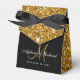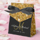 Personnalisez cette magnifique boîte de parties scintillant de mariage en faux or avec votre monogramme personnalisé, nom de mariée et de mariée et date de mariage. Elke Clarke © Parfait pour un élégant mariage glamour noir et or.