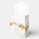 Un arrière - plan abstrait qui évoque le marbre veiné à la parties scintillant dans les tons dorés à travers le beige et le blanc doux est la toile de fond de textes élégants et de mises en page design moderne dans les pièces de cette belle suite mariage. Le ballotin "merci" mariage présenté ici présente vos noms et date de mariage sur un arrière - plan en marbre. Recherchez ID816 pour voir d'autres pièces et choix de couleurs pour cet ensemble.