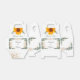 Un arrière - plan blanc décoré de tournesols, de verdure d'eucalyptus, de feuilles dorés et de poussière de parties scintillant en faux or. Avec le texte : Merci. Personnalisez et vos noms.