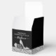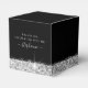 Élégante boîte de carré personnalisée avec parties scintillant argent haute talon stiletto chaussures et une bordure en faux parties scintillant argent avec confetti saupouts sur un arrière - plan noir avec texte de remerciement personnalisé, parfait pour un anniversaire moderne et chic, bat mitzvah, Quinceañera, douche nuptiale, baby shower ou fête de bachelorette. UTILISEZ LE DESIGN MODÈLE EDITOR pour modifier les polices, les couleurs et la disposition afin de créer un ballotin personnalisé amusant et unique pour vos invités de fête.