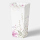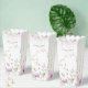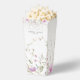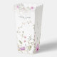 Ces grandes boîtes rectangulaires sont ornées d'un motif floral sauvage délicat aux couleurs douces, ajoutant une touche élégante et romantique aux faveurs de mariage. Le design est composé de petites fleurs et de feuillage dans les tons pastel, et les boîtes sont personnalisées avec le nom du couple et la date. Ces ballotins sont parfaits pour présenter des petits cadeaux aux clients, ce qui renforce l'attrait visuel de la décoration mariage par leur design thématique.
