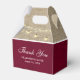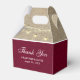 Mariage bordeaux rustique merci ballotin inspiré par les burlaps et les lampes à cordes. Ces boîtes de bienvenue texturées rustiques sont parfaites pour une fête de mariage campagnard bordeaux rustique. Personnalisez facilement nos boîtes de faveur de mariage bordeaux avec vos détails d'événement. Ces ballotins de remerciement peuvent être facilement personnalisés à d'autres occasions, comme des douches nuptiales rustiques.