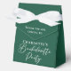 This solid emerald green bachelorette party favor box features classic white script for a bride who loves the outdoors and nature. Celebrate your friend with this deep color on this chic, minimalist bachelorette party design.