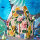 This personalized floral stripe wedding favor box features the couple’s custom initials and wedding date set against a vibrant, hand-painted garden pattern. Soft pink, yellow, and blue florals layered over pastel vertical stripes create a look that feels joyful, romantic, and timeless.