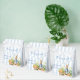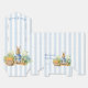 Peter rabbit baby shower favors, Peter rabbit with a blue jacket blue in vegetable garden baby shower personalized favor boxes. A cute bunny in a blue jacket standing in a garden with carrots for a baby boy baby shower monogrammed favor box, vintage retro story book baby shower personalized favors, retro dusty blue stripes baby shower monogrammed favor box