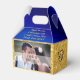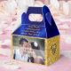 PHOTO, boîte de mariage personnalisée, anniversaire ou toute occasion. Couleurs Royal et Navy Bleu et belle Parties scintillant d'or Design avec Diamond Coeurs dorés ornent ces boîtes mariages de sacs de marchandises. Placez vos goodies mariages dans les étonnants ballotins bleu et or pour ajouter à vos décorations de table mariage. La conception personnalisée des boîtes de faveur de mariage peut être transférée à d'autres fournitures de réception de mariage personnalisées, décorations, cadeaux et plus encore. Pour effectuer des modifications entièrement personnalisables, CLIQUEZ SUR "MODIFIER À L'AIDE DE L'OUTIL DE CONCEPTION". Vous pouvez ici SUPPRIMER n’importe quel calque de conception, texte, redimensionner ou modifier le style de police et redimensionner ou déplacer vers ou SUPPRIMER les dessins ou l’image de couple. Vous pouvez également SUPPRIMER la couche bleue dans la COLONNE GAUCHE et modifier la COULEUR ARRIÈRE - PLAN en n'importe quelle COULEUR.