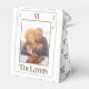 Ces boîtes de remerciement de mariage blanc comprennent 2 photos du couple heureux avec un texte en bronze. Conçu pour ressembler à la carte tarot "The Lovers". Pour modifier le texte et modifier les photos, cliquez sur le bouton Personnaliser.