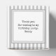 Personnalisez ces petites boîtes mignonnes avec votre image et votre message sur un design personnalisé photo keepsaké. Personnalisez le texte à l'avant avec votre année d'anniversaire. L'arrière - plan est un simple motif rayé avec des bandes verticales blanches simples sur un arrière - plan gris argenté. L'avant et l'arrière de la boîte ont un cadre photo carré numérique et un modèle photo pour faciliter l'ajout de votre propre image. (La même image s'imprime de part et d'autre.) Le haut a un modèle texte pour votre message de remerciement, événement, année, nom, initiale ou monogramme. Ce design géométrique gris argenté et blanc est une idée amusante pour envelopper les faveurs de fête d'anniversaire. La photo keepsaké est aussi un cadeau spécial pour Noël pour la famille et les amis. Le design rayé simple n'est pas seulement pour les anniversaires, il peut être pour toutes les occasions, pour tous les âges, et pour tous les genres; il suffit de changer le texte pour correspondre à votre événement.