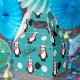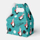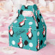 Ballotin de Noël vert, blanc et noir avec des pingouins jouant au pickleball et aux flocons de neige sur arrière - plan jaune. Idéal pour conclure vos cadeaux pour votre ami de pickleball ou membre de la famille