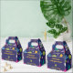 Boîte cadeau de Noël colorée avec icônes de Noël colorées sur arrière - plan bleu marine. Idéal pour conclure vos cadeaux pour votre ami de pickleball ou membre de la famille