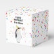 Une jolie illustration d'une fête de pingouins et de s'amuser ! Un pingouin portant un casquette de fête et faisant exploser la corne de fête avec des confettis qui pleuvent dessus. Que les célébrations commencent ! Parfait pour tous ceux qui aiment les illustrations d'animaux drôles. Idéal ballotin de fête d'anniversaire. Customisez l'occasion et le nom et faites-le vous-même.