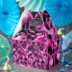 Pink tropical fruits and flamingos pattern with parrots pineapples banas and mangos.