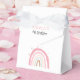 Ballotin de fête d'anniversaire à thème arc-en-ciel mignon et moderne. L'arc-en-ciel est aux couleurs pastel rose avec des étoiles autour.