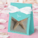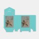Ces boîtes de mariage sur le thème de la plage présentent une photo d'une étoile de mer dans le sable comme point focal avec une empreinte d'un coquillage. La photo est entourée d'une belle couleur aqua et un joli ruban blanc est utilisé pour fermer le ballotin avec les mots "Merci" apparaissant juste en dessous du ruban. Un beau ballotin pour une réception de mariage sur le thème de la plage. Droit d'auteur