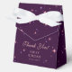 Celestial Rainbow Plum Moon Astronomy Wedding Favor Boxes présente des étoiles rose et violet avec le texte "Merci" dans le script de calligraphie moderne sur un arrière - plan de prune. Conçu pour vous par Evco Studio www.zazzle.com/store/evcostudio