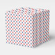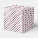 Cette boîte de faveur de cadeau est illustrée dans une impression de points rouges, blancs et bleus.