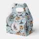 Ce ballotin d'événement Custom Halloween, artistique mais élégant, présente des illustrations dessinées à la main à l'encre noire par Nathalie Portet. Le nom, l'événement et la date personnalisés sont imprimés des deux côtés. Contre un arrière - plan français bleu chic, des images de chariots victoriens vintages, de casquettes sorciers, de corbeaux noirs, de citrouilles, de toiles d'araignée, de chaudrons-chauves-souris et de minuscules champignons mouchetés ornent cette boîte de faveur de fête. Un cadre circulaire présente votre salutation personnalisée ("Merci" peut être remplacé par "Happy Halloween, Félicitations, Happy 1st Birthday", etc.) Nom et date. Idéal pour les Baby showers d'Halloween, 1er Halloween, 1er Anniversaire, Bébé d'Octobre, Nouvelle Mère, etc.