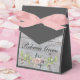 Ce motif mariage présente des bordures florales délicates sur un arrière - plan de barnboard rustique. Le design romantique est parfait pour un mariage de printemps ou d'été, et l'utilisation subtile des fleurs ajoute une touche d'élégance à l'ensemble.