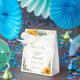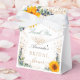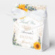 Un fond blanc décoré de tournesols, de verdure d'eucalyptus et de feuilles dorées et de poussière de paillettes d'or faux. Avec le texte : Mariage et Merci. Personnalisez avec le nom de la future mariée