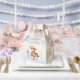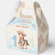 Premier Rodéo thème 1er Anniversaire grand ballotin gable avec un joli cheval de cow-boy en peau de vache bleu pastel et beige et motif avec vieille texture de papier. Vous pouvez choisir parmi 3 tailles de ces ballotins gables. Personnalisez facilement tout le texte, y compris le numéro de l'Anniversaire. - Kate Eden Art